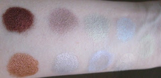 I finally got around to swatching these. Sorry it took so long! I'm waiting on at least two orders to arrive (three if my Archetype Cosmetics order ever actually gets here) so I'm trying to get a move on with the swatchies so I can get the reviews up soon after the new stuff gets here. This is my Pure Luxe order. I only ordered samples, but I lovelovelove that they come in jars. I got the Kaleidoscope collection, one Heavy Metalz in Molten, Mardi Gras Flash Cube, and the glow in the dark shadow in Apparition.